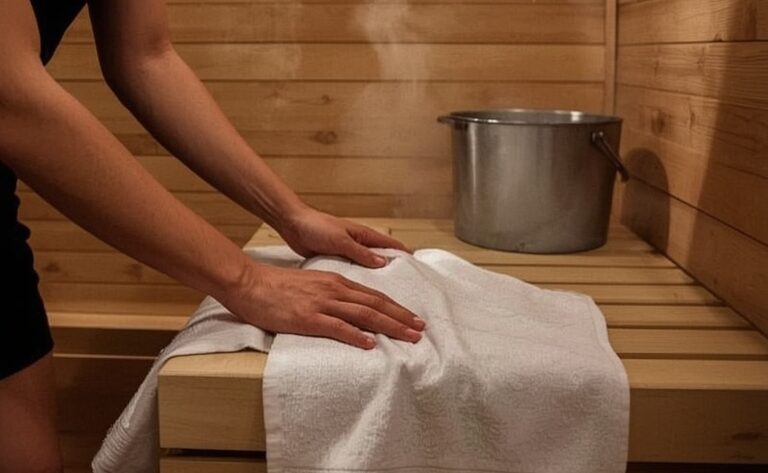 W saunie parowej warunki są inne: wysoka wilgotność oraz mgła parowa mogą ograniczać skuteczność bariery i zaburzać rozchodzenie się pary. W wielu obiektach panuje praktyka zalecająca saunowanie nago lub z minimalnym przykryciem ciała; ręcznik na ławce może ograniczyć oddziaływanie pary na skórę. Sprawdź zasady obiektu: jeśli wymagana jest nagość w saunie parowej, zostaw ręcznik poza kabiną.